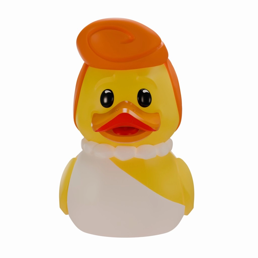 Plutajuća gumena patkica s glatkom površinom idealna je za vodu, a u vitrini se ističe zahvaljujući živim bojama i čistim linijama.