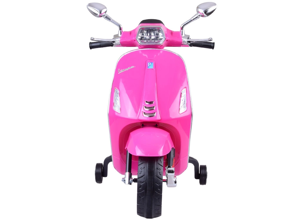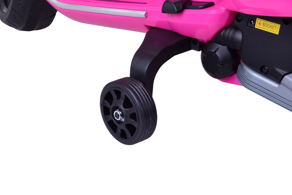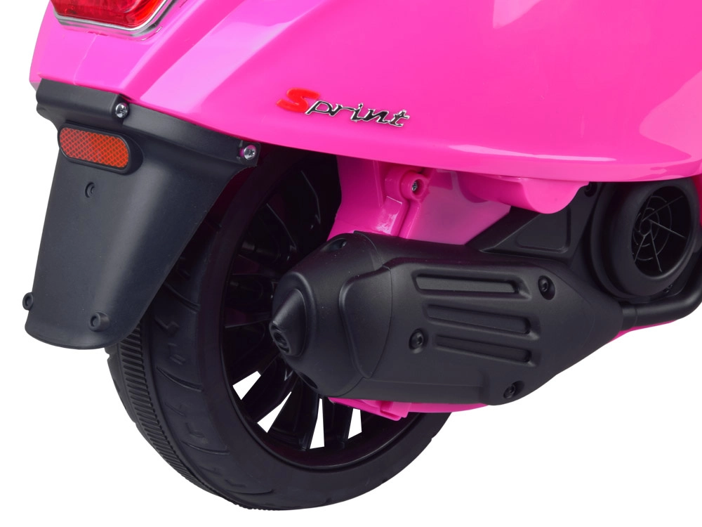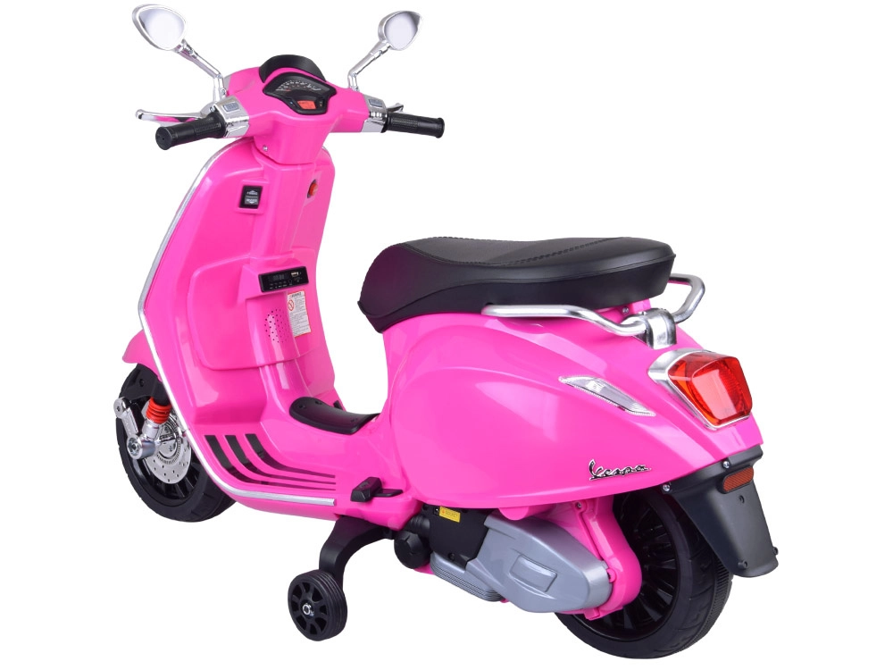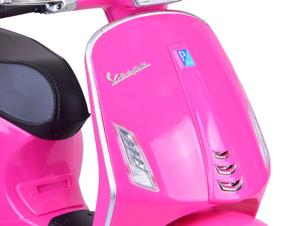 Električni dječji skuter u stilu VESPE spaja elegantan dizajn s modernim funkcijama. Pokreće se pritiskom na gumb, a simulacija zvuka motora pruža autentičan doživljaj vožnje. Snažan pogon 2 × 12 V / 25 W i akumulator 12 V / 4,5 Ah osiguravaju udobnu i glatku vožnju, dok prednji svjetlomet dodaje stil i bolju vidljivost.
