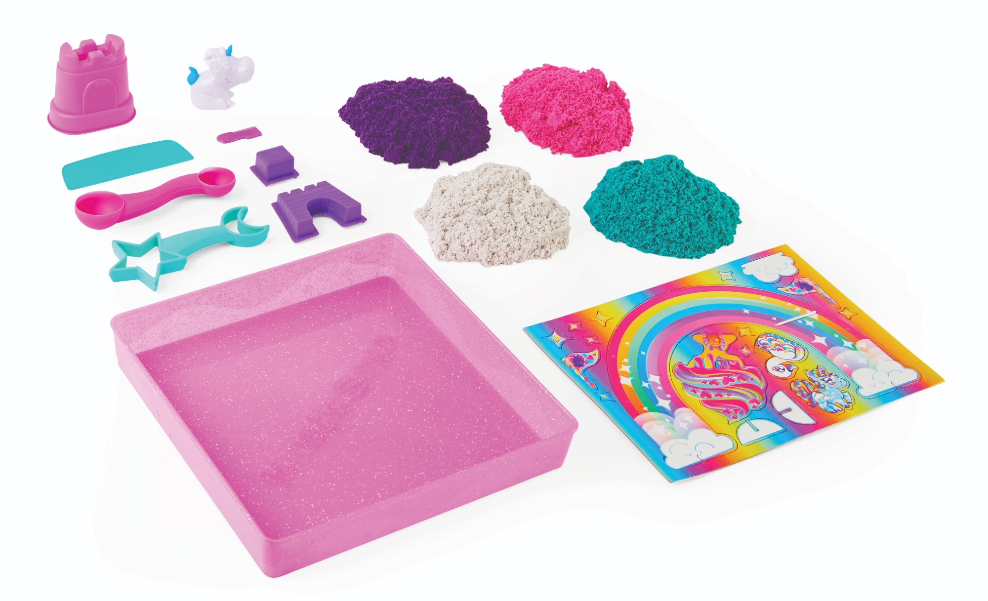 Uđite u bajkoviti svijet jednoroga i izgradite vlastito kraljevstvo od kinetičkog pijeska. U pakiranju se nalazi približno 0,9 kg pijeska u četiri boje – ljubičastoj, ružičastoj, tirkiznoj i bijeloj – sa suptilnim sjajem koji svakom uratku daje čaroban izgled.