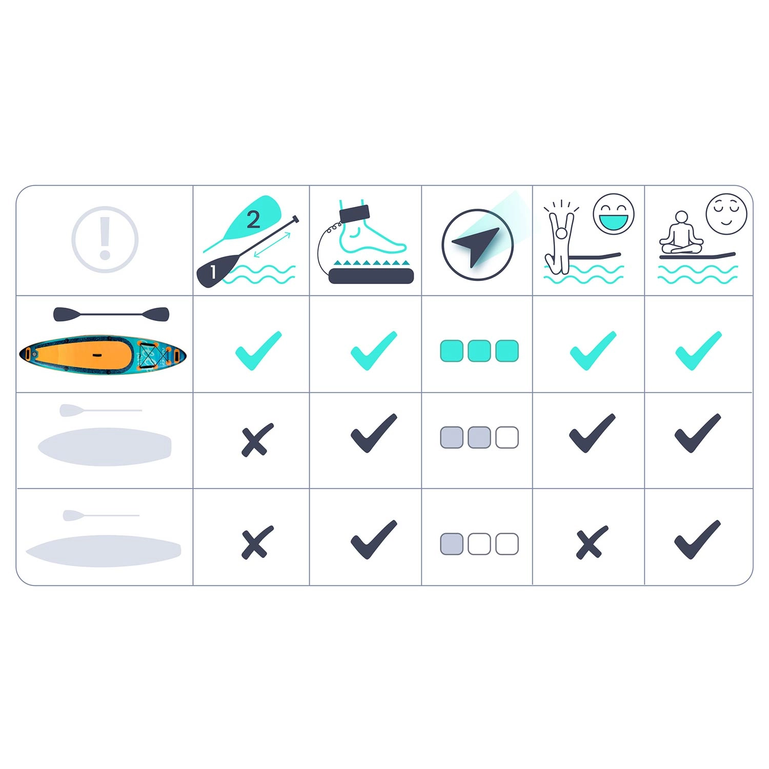 Protuklizna EVA podloga, središnja ručka i prednja bungee mreža za učvršćivanje opreme. Idealno za udobno ukrcavanje, siguran stav i bezbrižan prijevoz stvari.