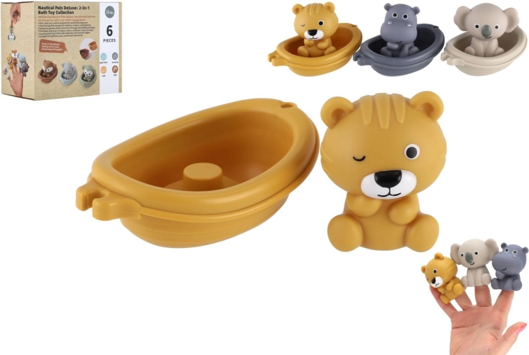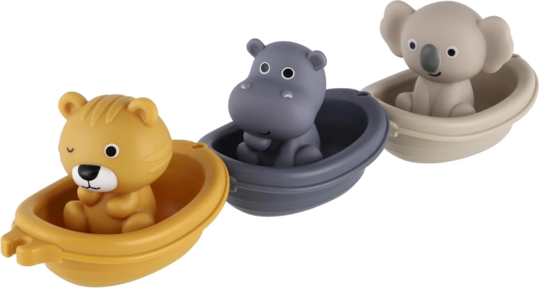 Ovaj razigrani set za kupanje donosi djeci puno zabave u kadi i u dječjem bazenu. Životinje u brodicama dizajnirane su s glatkim, zaobljenim oblicima za sigurno igranje, lako se drže i lijepo plutaju na vodi. Zahvaljujući ugodnom, mekom materijalu idealne su za malu djecu i svakodnevne vodene radosti.