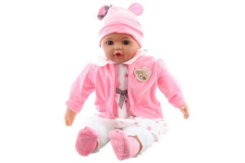 Slatka bebica – djevojčica u prekrasnoj cvjetnoj haljinici razveselit će svaku malu mamicu. Lutka ima mekano tjelešce za ugodno maženje i realističnu glavicu i dijelove udova od čvrste plastike za izdržljivost pri igri. S veličinom od 50 cm djeluje prirodno i savršeno pristaje dječjem zagrljaju. Idealan poklon za djecu od 3 godine.