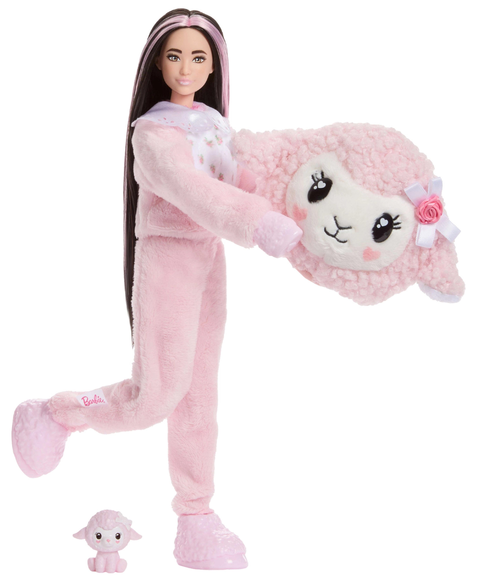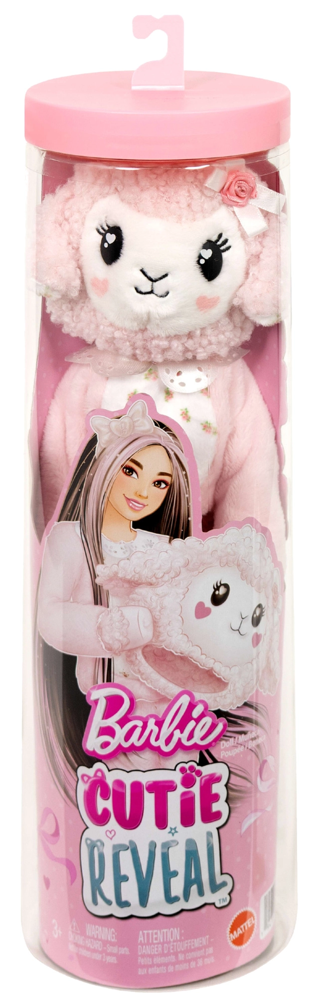 Uđite u svijet iznenađenja i slatkog stila. Lutka je skrivena u mekanom kostimu ružičaste ovčice s uzorkom mašnica. Nakon otkrivanja, čeka vas lutka BARBIE s dugom kosom, spremna za češljanje i presvlačenje. Odjeću je moguće okrenuti naopačke i pretvoriti je u modnu jaknu, a glavica kostima služi kao ležaj za mini-životinjicu.
