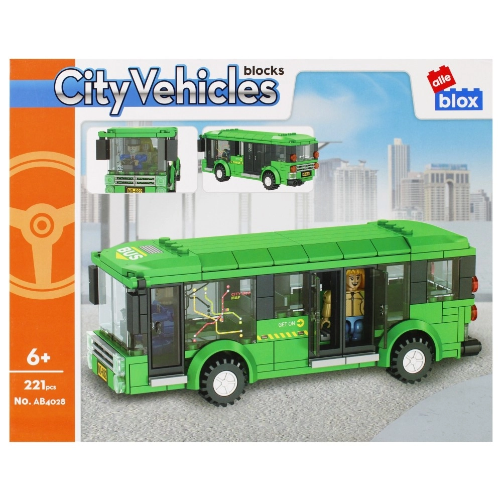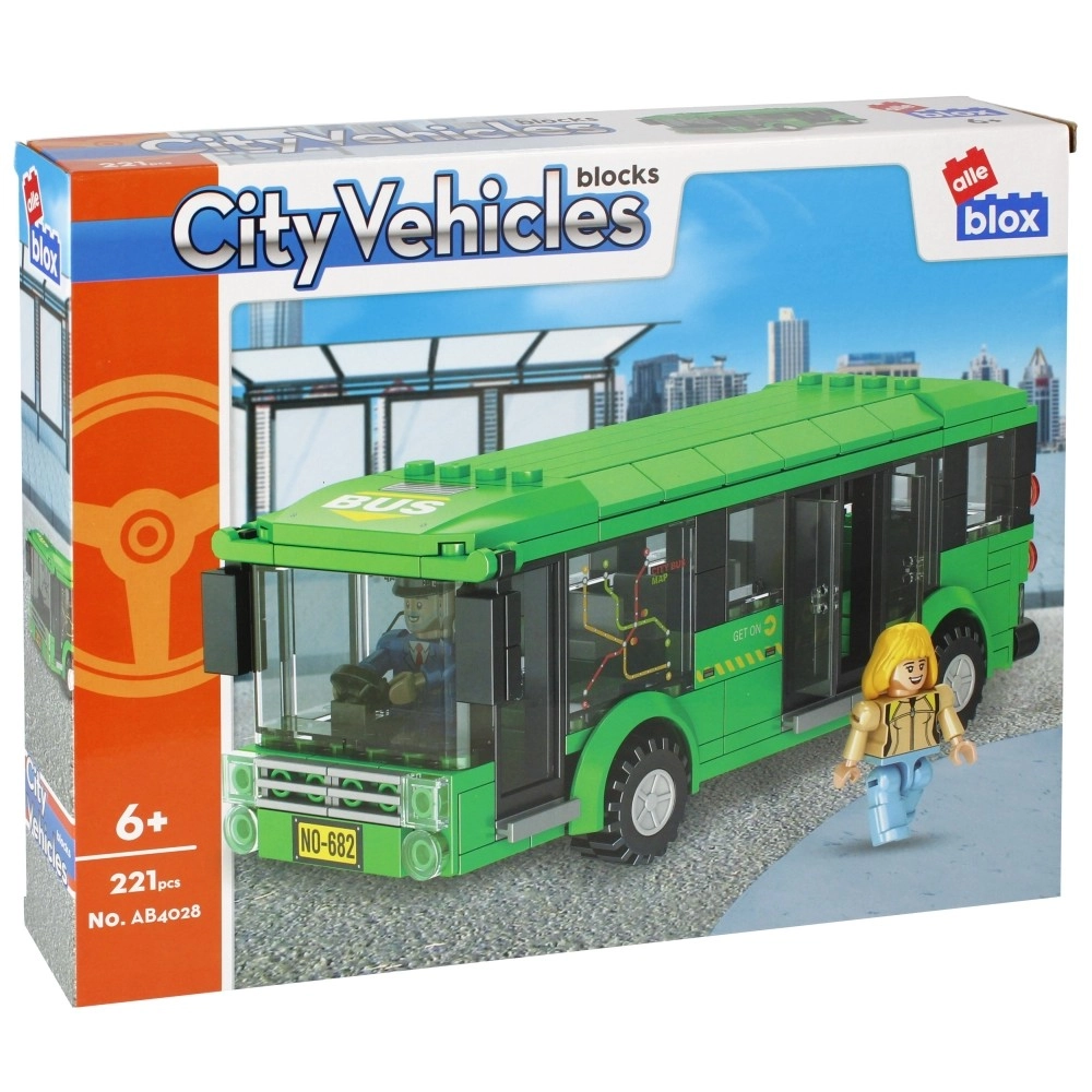 Otkrijte zabavu gradske vožnje s konstrukcijskim setom AlleBlox City autobus. Zahvaljujući 221 dijelu djeca slažu realističan zeleni autobus s prozirnim prozorima, svjetlima i vratima koja se otvaraju. Dvije priložene figurice potiču osmišljavanje priča s užurbanih ulica i stajališta.