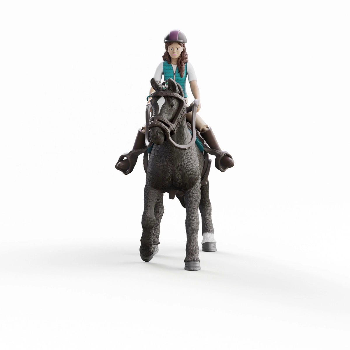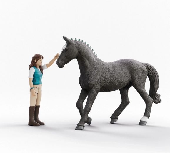 Figurica jahačice ima zglobove u ramenima, kukovima i glavi, pa je lako možete posjesti u sedlo ili postaviti uz konja za njegu. Odlično za realistične scenarije igre.