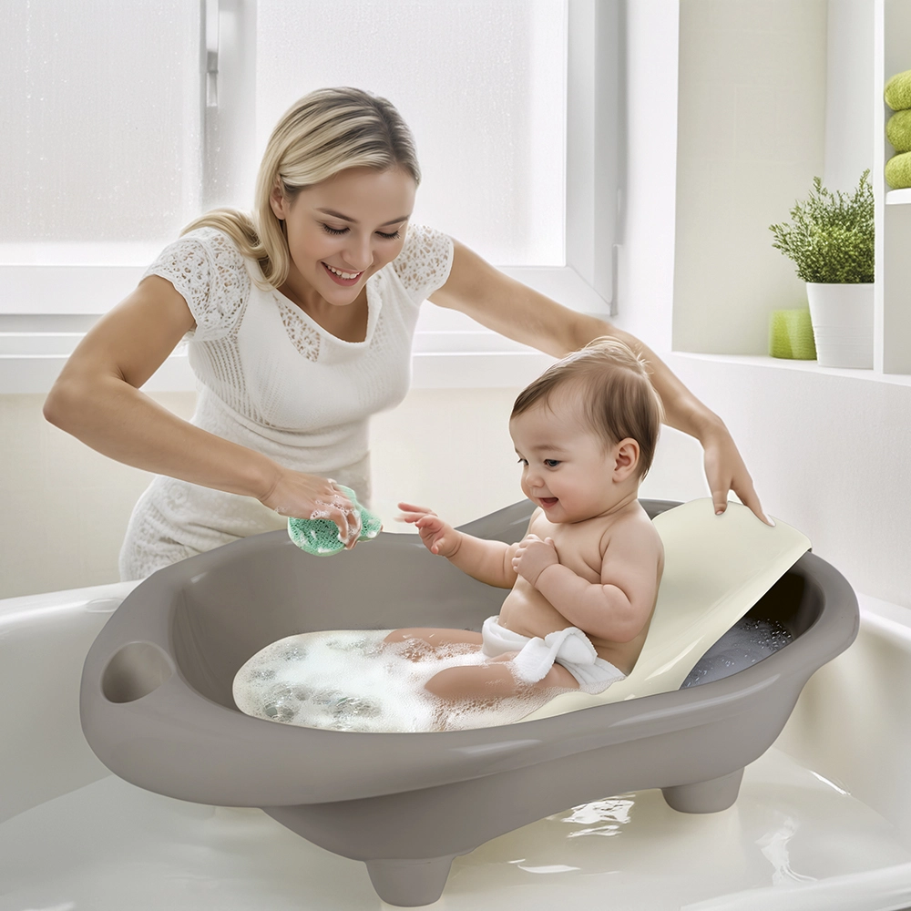 Uživajte u mirnom i sigurnom kupanju bebe od prvih dana. Dječja kadica s ležaljkom Hippo spaja ergonomski oblik, promišljene detalje i jednostavno održavanje. Integrirana ležaljka s trima uporišnim točkama – dvjema ispod pazuha i jednom između nogu – osigurava bebi stabilnost i ispravan položaj tijekom kupanja.