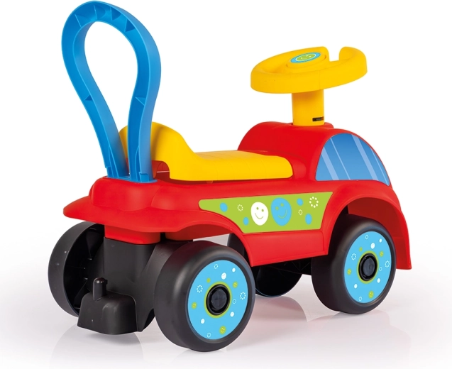 Zabavno i sigurno dječje guralo u crvenoj boji podržava prve korake, ravnotežu i koordinaciju. Zahvaljujući stražnjoj ručki, spremniku i funkcionalnom trubi djeca će uživati u mnogo vožnje i zabave. Laka i izdržljiva plastična konstrukcija, stabilni kotači i udobno sjedalo čine ovo guralo idealnim izborom za djecu 12–36 mjeseci.