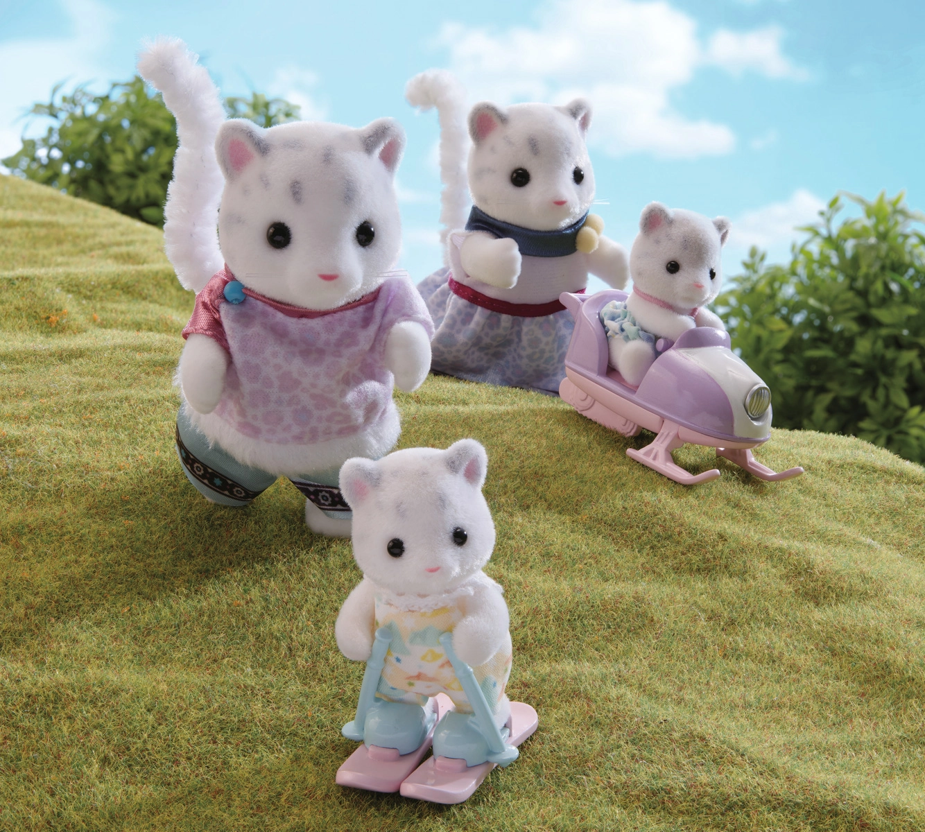 Ova precizno izrađena obitelj snježnih leoparda razveselit će djecu i kolekcionare. Mama, tata i dva mačića imaju mekanu, baršunastu površinu i prepoznatljive duge repove. Zahvaljujući zimskim dodacima djeca mogu stvarati dinamične priče na snijegu, voziti skuter ili učiti mačiće skijati.