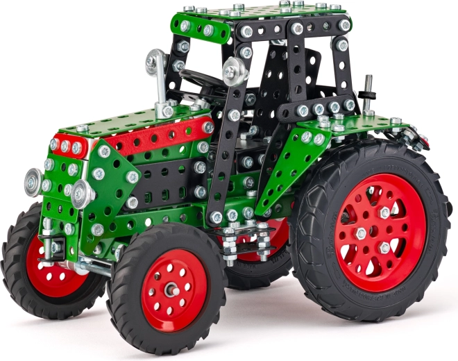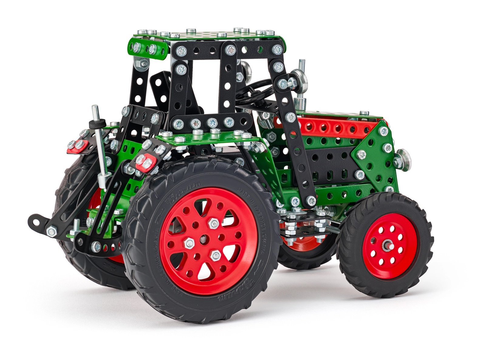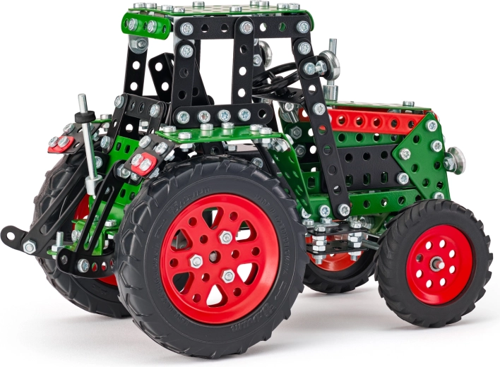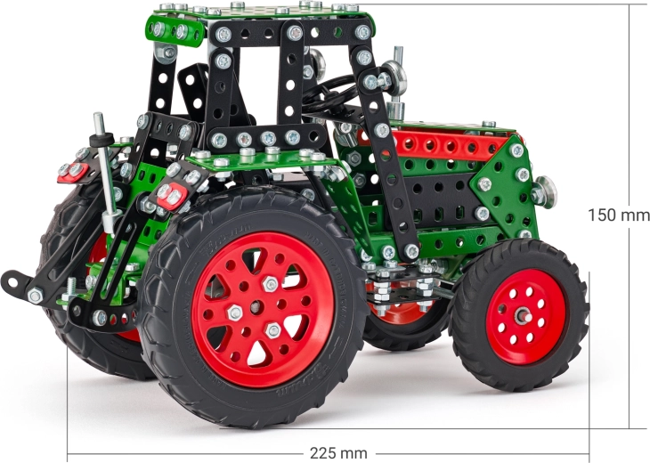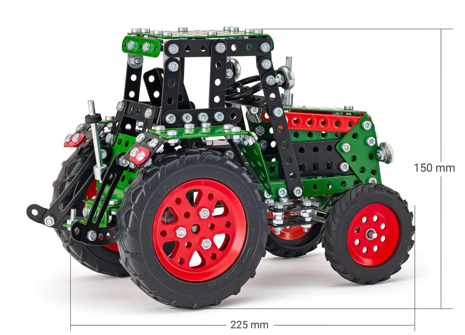 Set MERKUR – Traktor 4x4 odličan je izbor za male i veće konstruktore. Zahvaljujući čvrstim metalnim dijelovima i spajanju pomoću vijaka djeca će sastaviti realističan zeleni traktor 4x4 koji potiče strpljenje i preciznost tijekom slaganja.