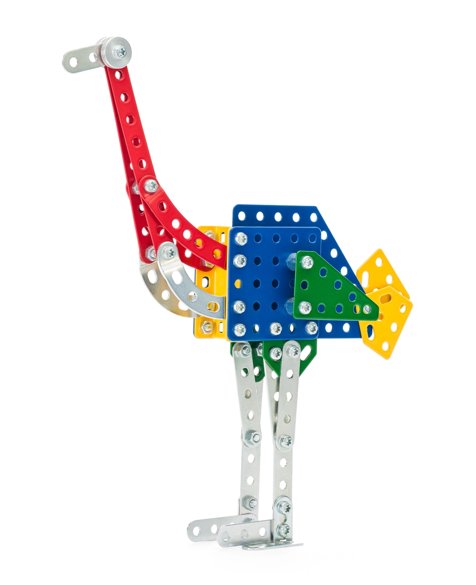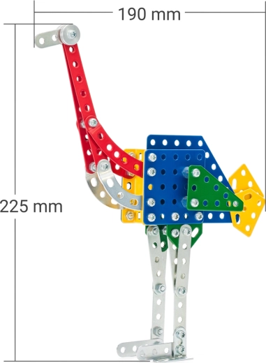 Konstrukcijski set MERKUR Zoo – noj odličan je izbor za djecu koja vole tehniku, životinje i stvaranje. Kvalitetni metalni dijelovi i čvrsti spojevi na vijke osiguravaju stabilnost modela i dug vijek trajanja. Razina težine 3 nudi zabavan izazov te potiče spretnost i maštu.