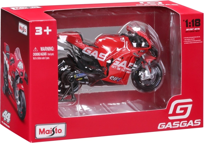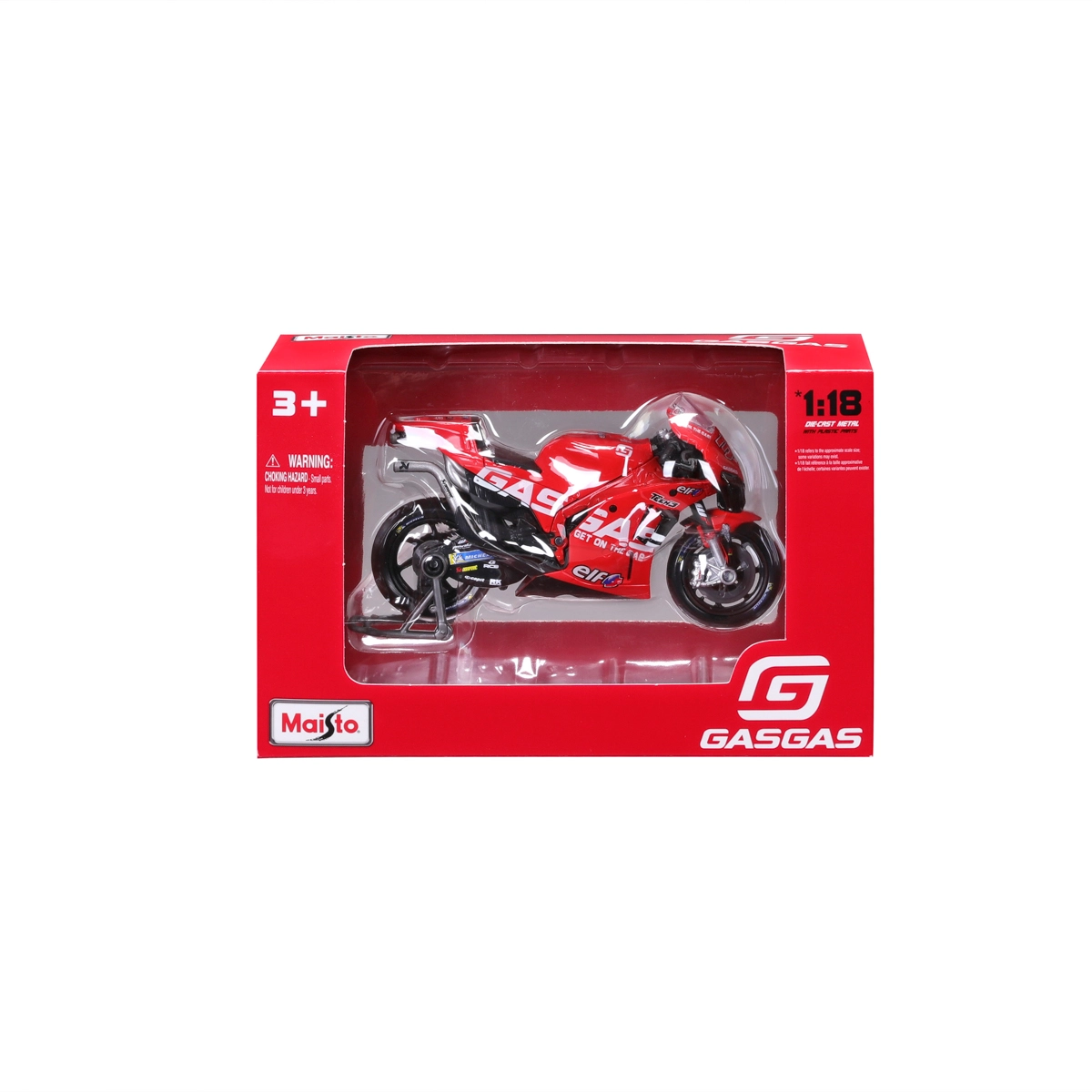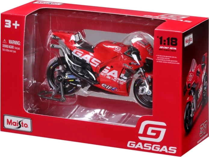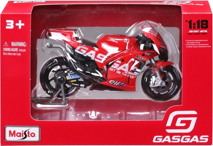 Zahvaljujući metalnoj konstrukciji s plastičnim dodacima model je izdržljiv, a ujedno detaljan. Slobodno okretajući kotači omogućuju glatko kretanje, a priloženi paddock stalak osigurava stabilno izlaganje. Isporučuje se u poklon kutiji, izvrsno kao dar za ljubitelje MotoGP-a i marke GASGAS.