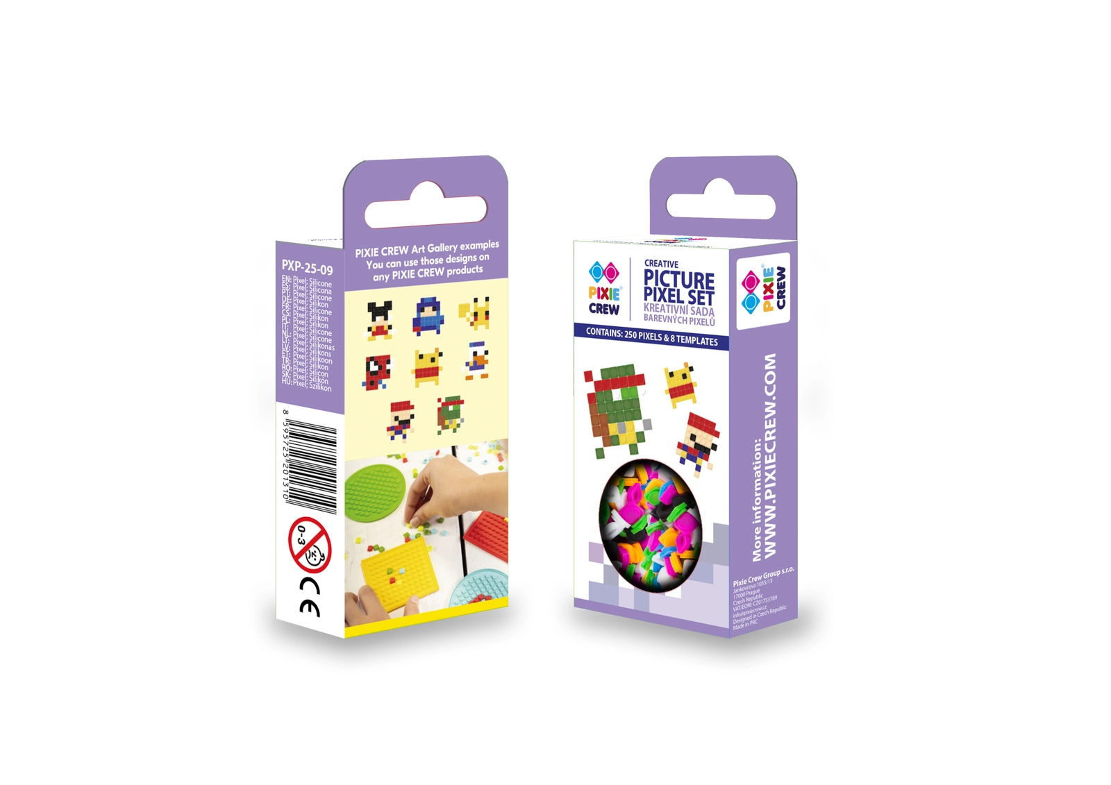 Kreativni set PIXIE CREW idealan je za male stvaratelje koji vole pixel art. U pakiranju se nalazi 250 kvalitetnih silikonskih piksela i 8 motiva s kojima ćete lako izraditi zabavne slike. Zahvaljujući patentiranom obliku, pikseli čvrsto stoje na silikonskim panelima pa se uradak neće lako rasuti.
