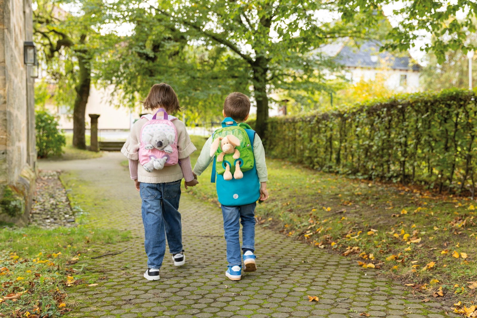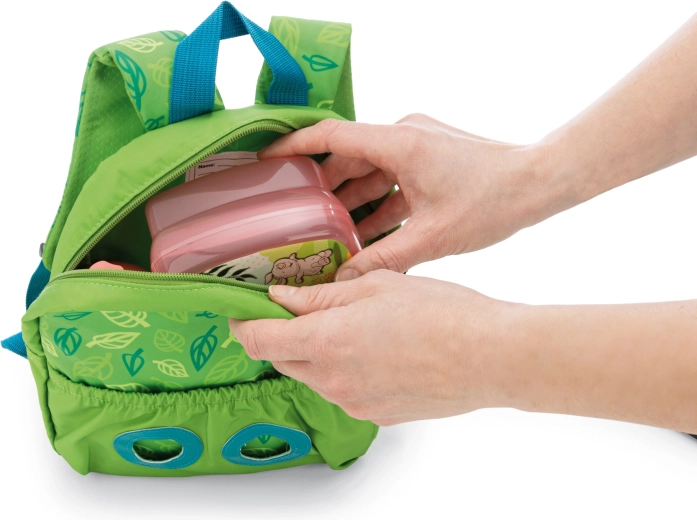 Ruksak je dizajniran za udobno nošenje zahvaljujući podstavljenim, podesivim naramenicama i mekom stražnjem dijelu. Glavni pretinac s patentnim zatvaračem sigurno prima užinu, bočicu ili male dragocjenosti. Integrirana imenica pomaže brzo prepoznati ruksak u vrtiću i na aktivnostima.
