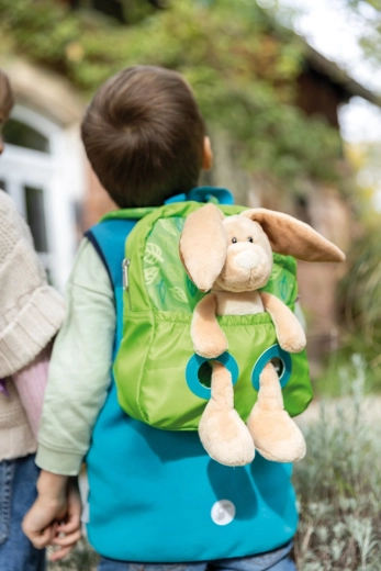 Presladak dječji ruksak NICI u zelenom dizajnu s motivom listića spaja praktično svakodnevno nošenje s razigranom plišanom igračkom. Mekani zekić 25 cm pričvršćen je u prednjem džepu elastičnom gumicom, ali se može lako izvaditi za igru. Ruksak nudi podstavljene i podesive naramenice, mekanu stražnju stranu i glavni pretinac s patentnim zatvaračem za sigurno spremanje sitnica. Sjajan suputnik za vrtić, izlete i posjete baki.