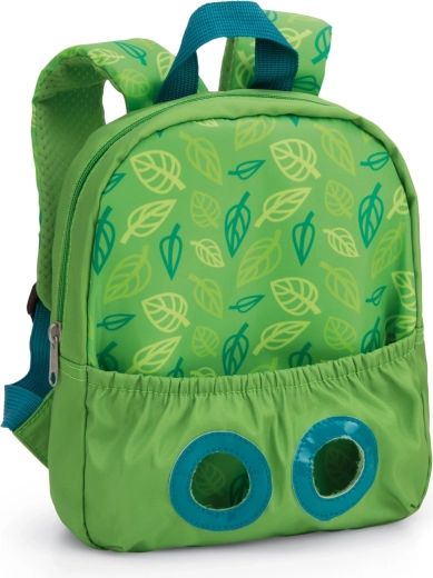 Glavni pretinac s patentnim zatvaračem prima užinu, bocu i male igračke. Prednji elastični džep drži plišanca sigurno na mjestu.