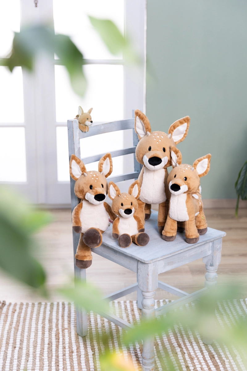 Plišani jelenčić René iz linije Forest Friends donosi djeci i roditeljima spoj preslatkog dizajna i odgovornog pristupa. Tijelo u smeđe-bijeloj boji s nježnim točkicama, mekane šapice i detaljan vez na nozi čine ovog mazilicu predivnom dekoracijom i vjernim prijateljem za svaki dan.