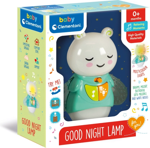 Preslatka noćna lampica u obliku krijesnice stvara ugodnu, umirujuću atmosferu za uspavljivanje od prvih dana života. Poseban sustav osvjetljenja proviruje kroz prozirne dijelove i djeluje čarobno, pri čemu svjetlo nježno pulsira poput otkucaja srca. Zahvaljujući kombinaciji klasične glazbe i bijelog šuma lampica postaje omiljeni večernji ritual.