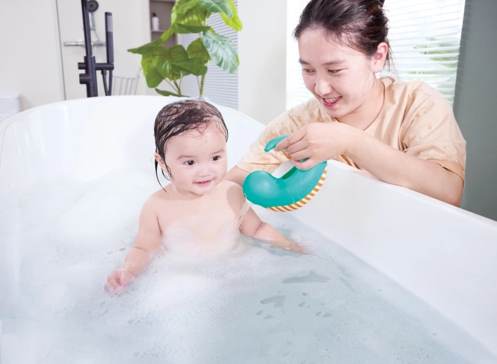 Igra s vodom potiče razvoj fine motorike, oko–ruka koordinaciju i učenje principa uzrok–posljedica. Djeca mogu pogađati ciljeve, ispirati pjenu s kože ili jednostavno promatrati protok vode. Zalijevačica je lagana, pluta na površini, a zahvaljujući glatkim, zaobljenim rubovima sigurna je za svakodnevne kupke.