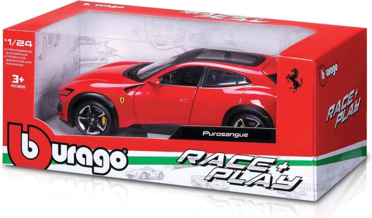 Otkrijte vrhunske FERRARI modele u mjerilu 1:24 brenda Bburago iz serije Race & Play. Precizna die-cast izvedba vjerno kopira stvarne automobile – od proporcija karoserije preko svjetala i kotača do amblema. Idealno za kolekcionare, ali i kao stilska dekoracija ili kvalitetna igračka za djecu od 3 godine.