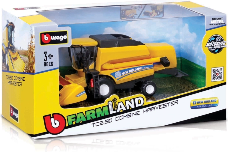 Realističan model kombajna NEW HOLLAND TC5.90 marke BBURAGO FARMLAND razveselit će male farmere i kolekcionare. Metalna izrada s plastičnim detaljima, duljina 18 cm, slobodan hod, dvije varijante žetvenih hedera (žitarice/kukuruz) u nasumičnom assortu. Primjereno od 3 godine.