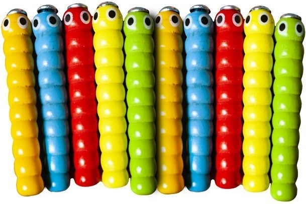 - Kompletan set: drvena jagoda, magnetska štapić-šipka i 10 crvića/gusenica