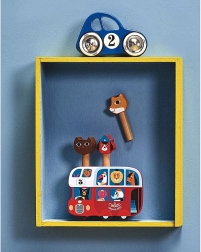 Plavi automobilčić Vilac izrađen je od lakiranog drva, što osigurava njegovu izdržljivost i elegantan izgled. Ima metalne kotače s gumenom oblogom koji omogućuju glatku i tihu vožnju. Zahvaljujući posebnom rješenju osovine, automobilčić može skretati lijevo i desno, što igri daje dodatnu dinamiku.