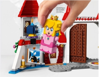 Uđite u kraljevstvo PRINCESS PEACH s bogato razrađenim modelom dvorca koji će proširiti vaše LEGO Super Mario staze. Čeka vas prijestolna dvorana s rotirajućim zidom iza kojeg se skriva Bowser, vitraj s Peach, tajna slika s akcijskom oznakom i torta s Goombom. Tu su i posebna dvoranska cijev, vremenski blok, laveni most i zdjela s ljubičastim voćem.