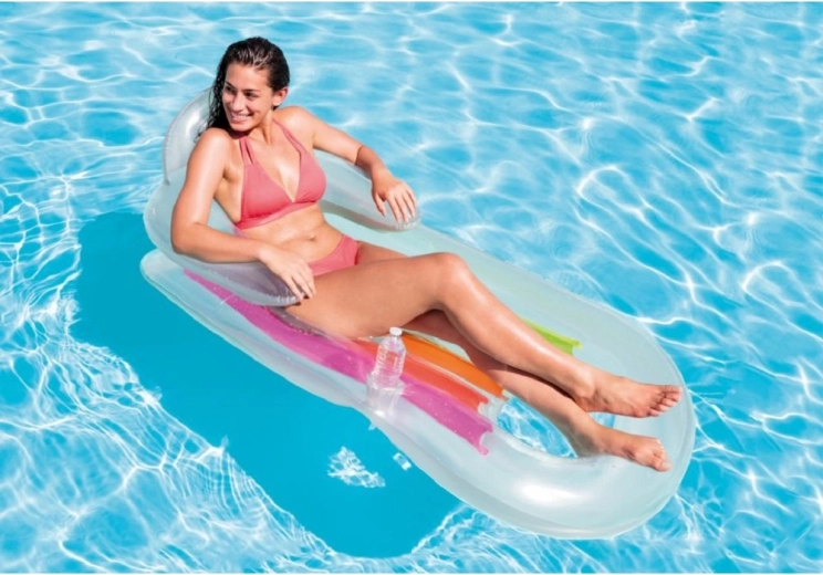 Nafukovací madrac Intex King Kool dizajniran je za udobno ležanje i sunčanje na vodenoj površini. Integrirani jastuk, nasloni za ruke i oblikovano sjedalo osiguravaju stabilan i ugodan položaj, dok praktični držač napitaka drži vaš osvježavajući napitak uvijek pri ruci.