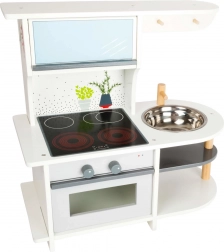 Predstavljamo drvenu kuhinjicu Graceful, savršenu za male prostore, ali s velikim doživljajima. Kuhinjica je opremljena izvlačivim metalnim sudoperom koji djeca mogu napuniti vodom i isprobati pranje posuđa.