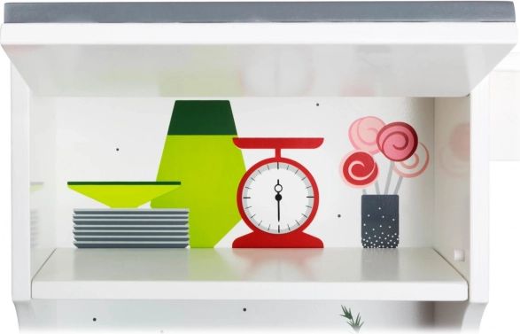 Uvjerljivosti igre doprinose okretni gumbi s klikajućim zvukovima, dok pećnica s magnetskim zatvaranjem služi kao praktičan spremnik. Kuhinjica dodatno sadrži dodatne police i kukice za spremanje maketa hrane i posuđa.