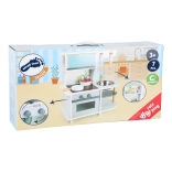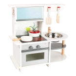 Zahvaljujući robusnoj konstrukciji od drva i metala, ova kuhinjica je izdržljiva i pruža niz interaktivnih doživljaja. Isporučuje se s ilustriranim uputama za montažu i osnovnim setom pribora.