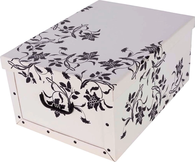 Otkrijte praktično i lijepo rješenje za pohranu stvari. Spremne kutije MISS SPACE s uzorkom baroknih cvjetova u bijeloj boji ističu se čvrstom konstrukcijom od kaširanog kartona i promišljenim detaljima, kao što su integrirane ručke za jednostavno prenošenje. Talijanska proizvodnja jamči kvalitetnu izradu i dug vijek trajanja.