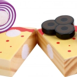 Sadrži sve što je potrebno za igru: drvena pizza, dodaci i lopatica za pizzu.