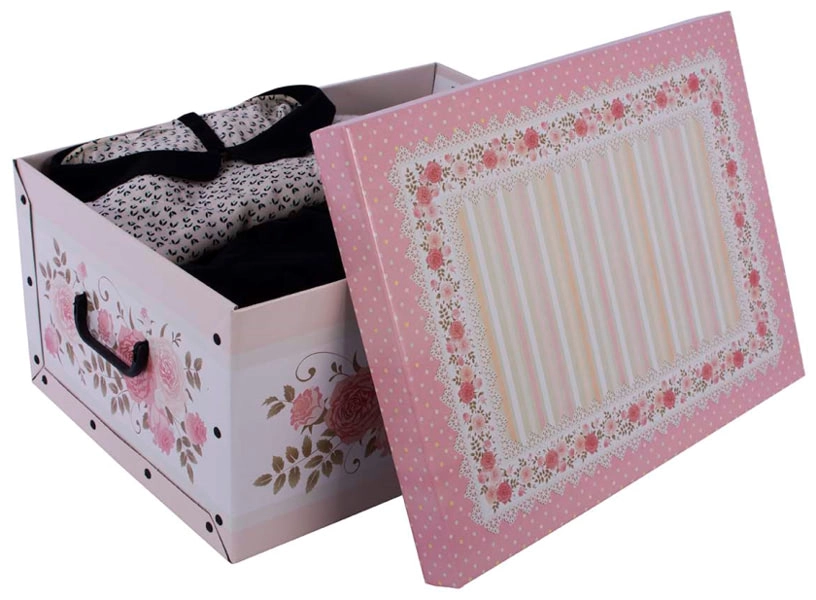Kutija se lako i brzo sastavlja bez alata, ima ojačane stijenke i praktične ručke za udobno prenošenje. Može se slagati radi uštede prostora u ormaru, uredu, dječjoj sobi, kao i u podrumu ili garaži. Elegantni izgled čini je i odličnom idejom za poklon.