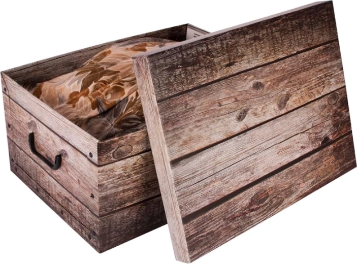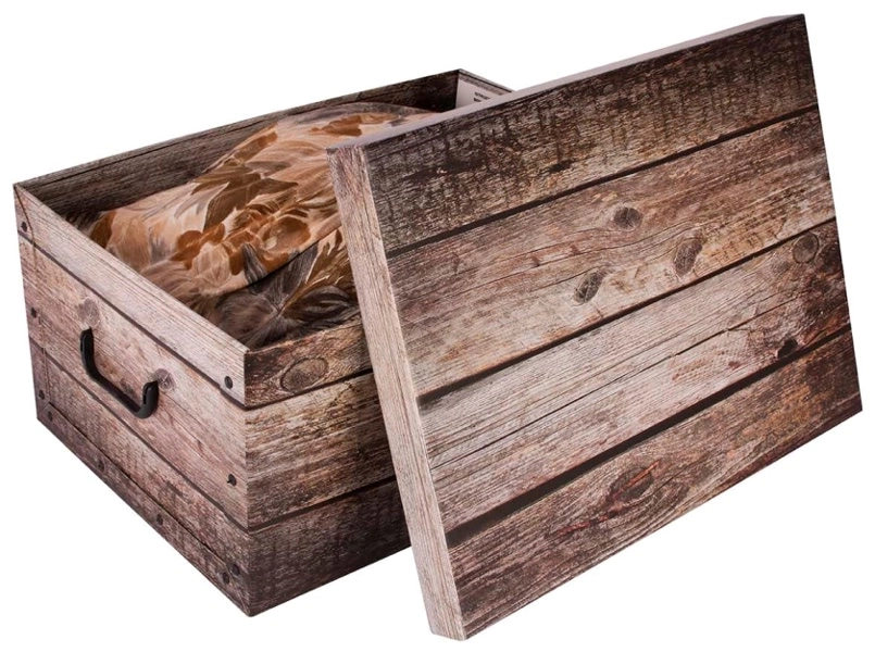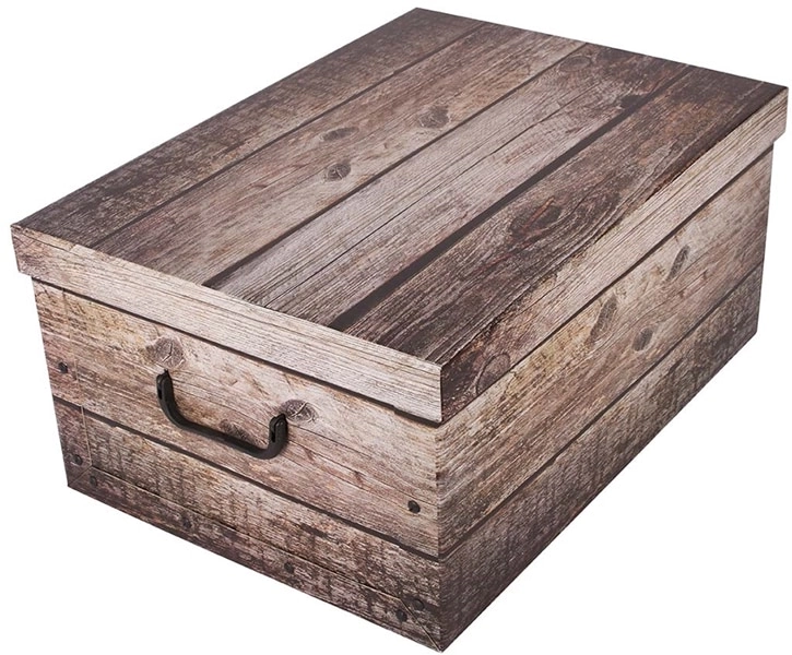 Folia s vjerodostojnim drvenim uzorkom pretvara obično spremanje u dizajnerski detalj. Kutija se uklapa u moderne i rustikalne interijere.