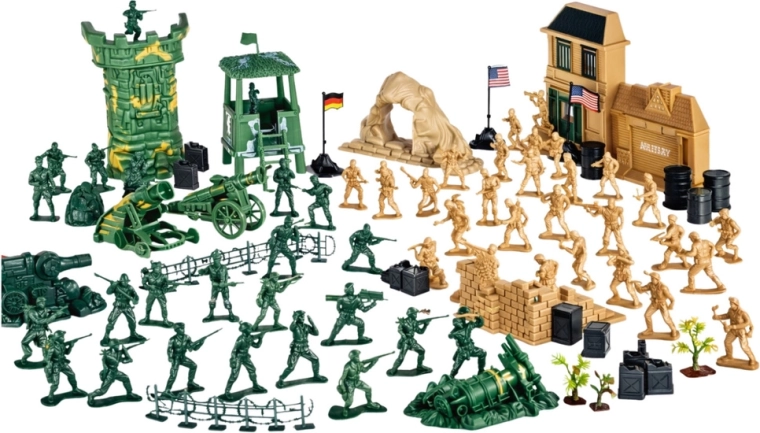 Ovaj veliki vojni set nudi djeci autentičnu akcijsku igru s desecima poza vojnika, topovima, zaprekama i modularnim scenama. Zahvaljujući bogatom izboru pribora lako je graditi obrambene položaje, baze i zapovjedna mjesta te stvarati uzbudljive borbene misije.