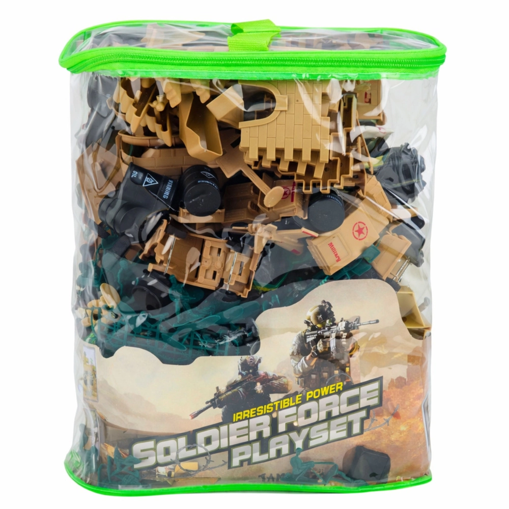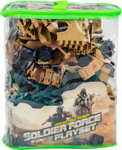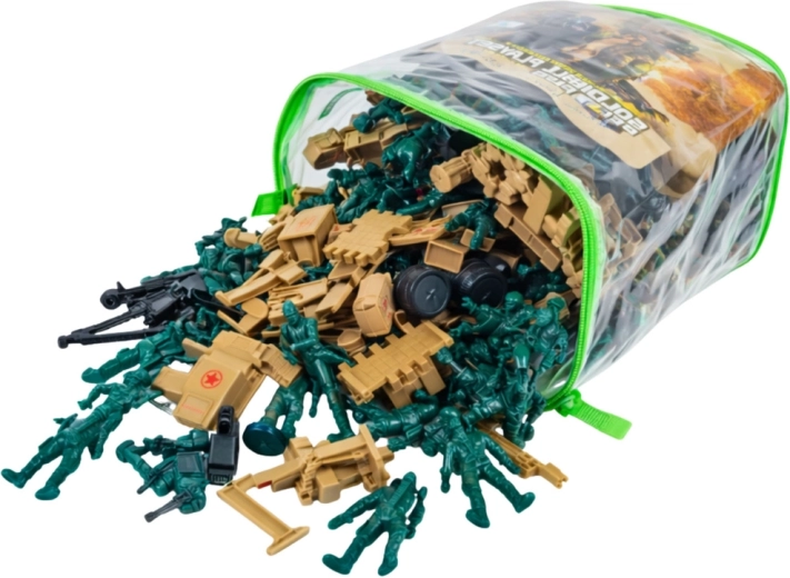 Opsežan vojni set za djecu donosi čak 400 dijelova za beskrajne scenarije bitaka, misija i obrane baza. U setu se nalaze vojnici, vozila, topovi, barijere i drugi vojni dodaci. U paketu je i prozirna torba s patentnim zatvaračem za jednostavno spremanje i prenošenje. Izdržljive plastične figurice potiču kreativnu igru, razvijaju maštu i finu motoriku – idealno za samostalnu i timsku zabavu kod kuće i na otvorenom.