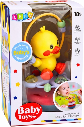 Glava patkice rotira se za 360°, perlice na elastičnom luku mogu se pomicati i okretati – izvrsno za vježbanje hvata i koordinacije oko–ruka.