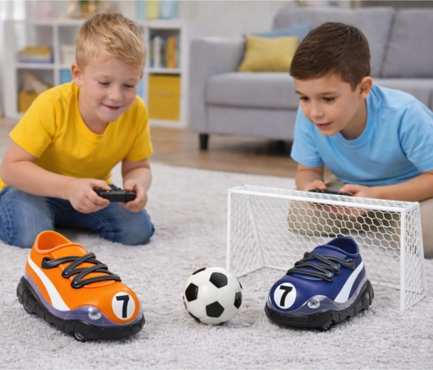 Zabavan set dvaju RC automobila u obliku tenisica donosi kućni nogomet na stol i pod. Djeca uz pomoć bežičnog upravljača mogu organizirati vlastite utakmice, gađati gol i vježbati preciznost. Zahvaljujući frekvenciji 2,4 GHz upravljanje je stabilno, vožnja naprijed/natrag i skretanje je glatko, a izdržljiva plastična konstrukcija podnosi intenzivnu igru. U paketu su mini gol, nogometna loptica i dva upravljača – idealno za braću, sestre i prijatelje.