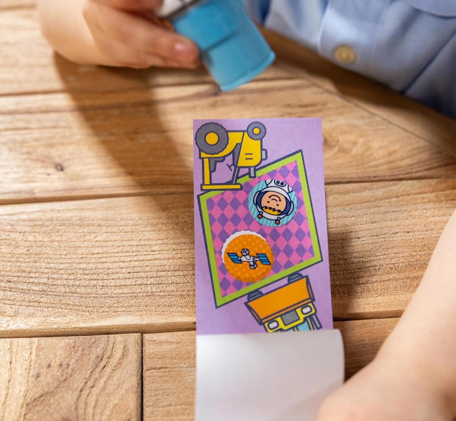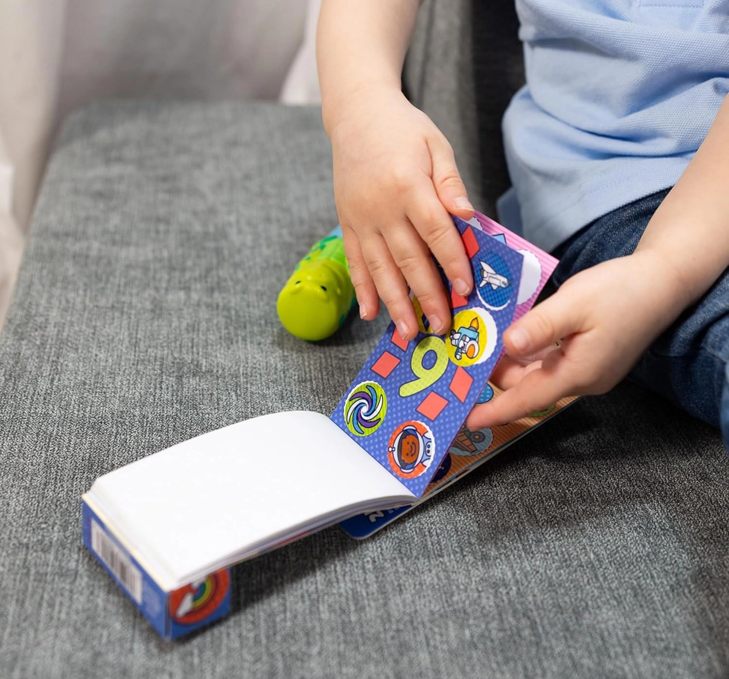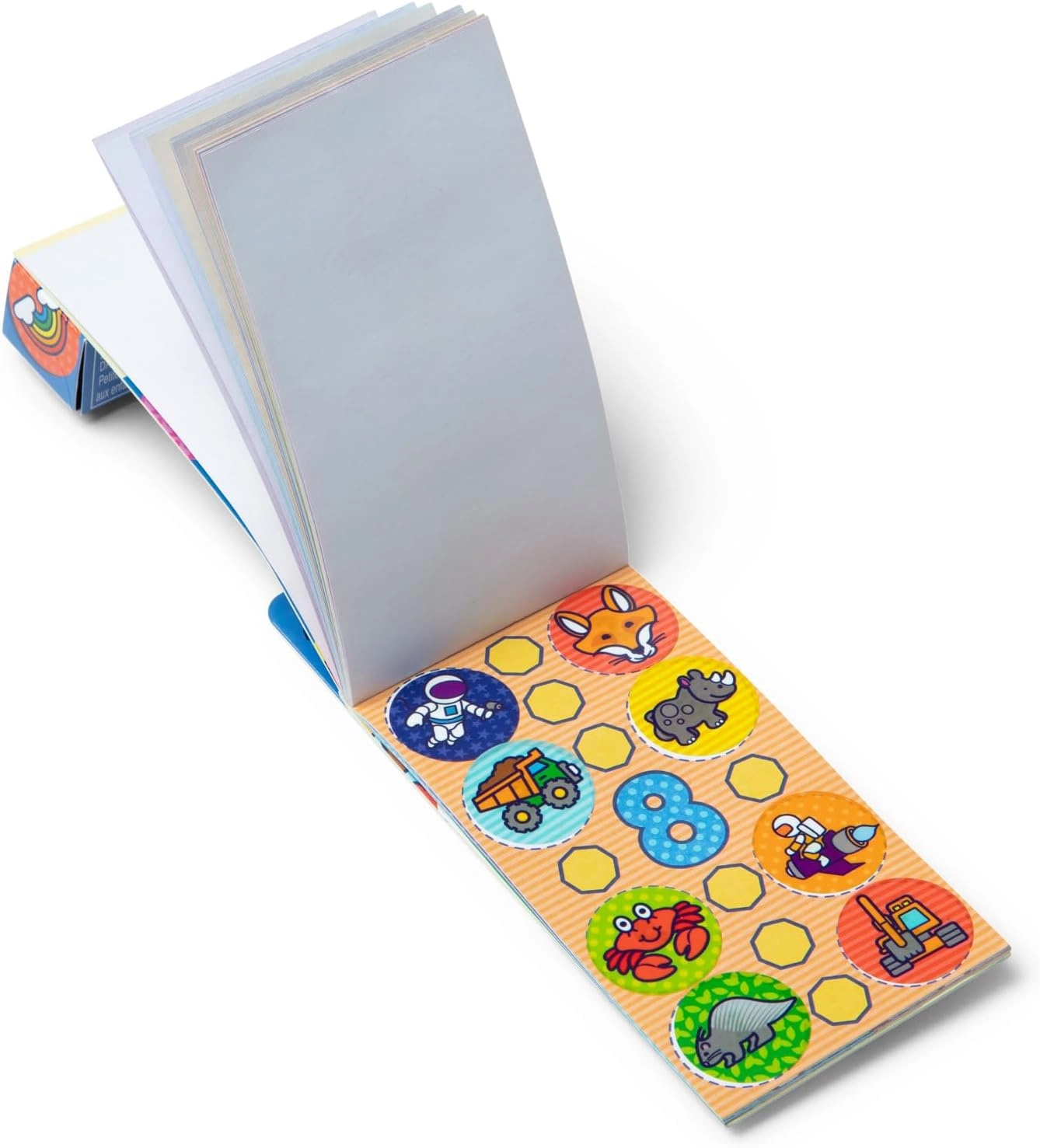 Format prilagođen dječjim rukama, pregledno posložene naljepnice i čisto stvaranje bez nereda.