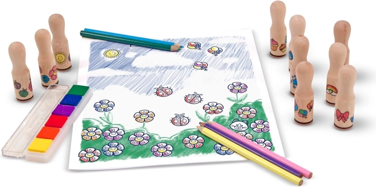 Ovaj kreativni set idealan je za male umjetnike koji vole ukrašavati, osmišljavati i stvarati vlastite crteže. Zahvaljujući kombinaciji pečata, tinta i bojica, djeca lako stvaraju šarene kompozicije i razvijaju maštu. Drvena izrada ugodna je za držanje, a pečati ostavljaju čiste, ponovljive otiske.