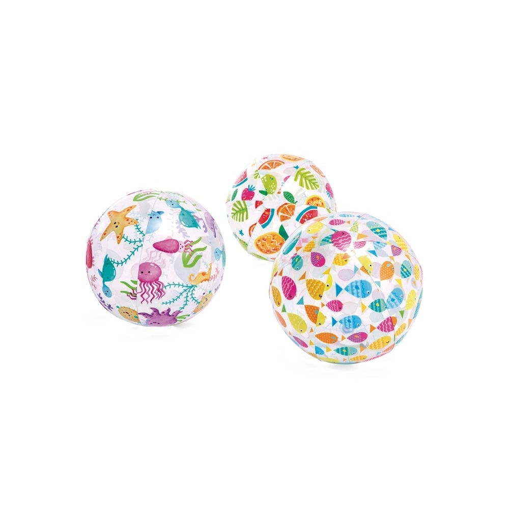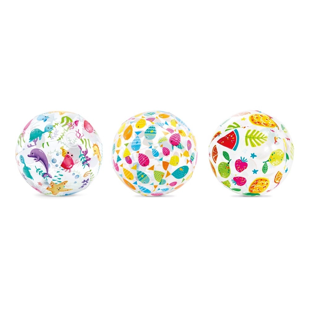 Nafukavajuća lopta INTEX s kolorističkim voćnim tiskom izvrstan je izbor za ljetne igre i obiteljsku zabavu. Zahvaljujući promjeru od 51 cm lako se hvata i odbija, prikladna je za djecu od 3 godine te oduševljava svojom lakoćom i sigurnom izradom od PVC-a bez ftalata.