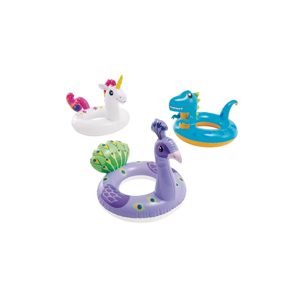 Slatki dječji napuhujući krug u obliku pauna marke Intex donosi puno zabave uz bazen i na plaži. Šareni dizajn s glavom i repom pauna, siguran masivan vinil i glatki šavovi za udobnu i sigurnu igru. Pogodno za djecu od 3 godine.