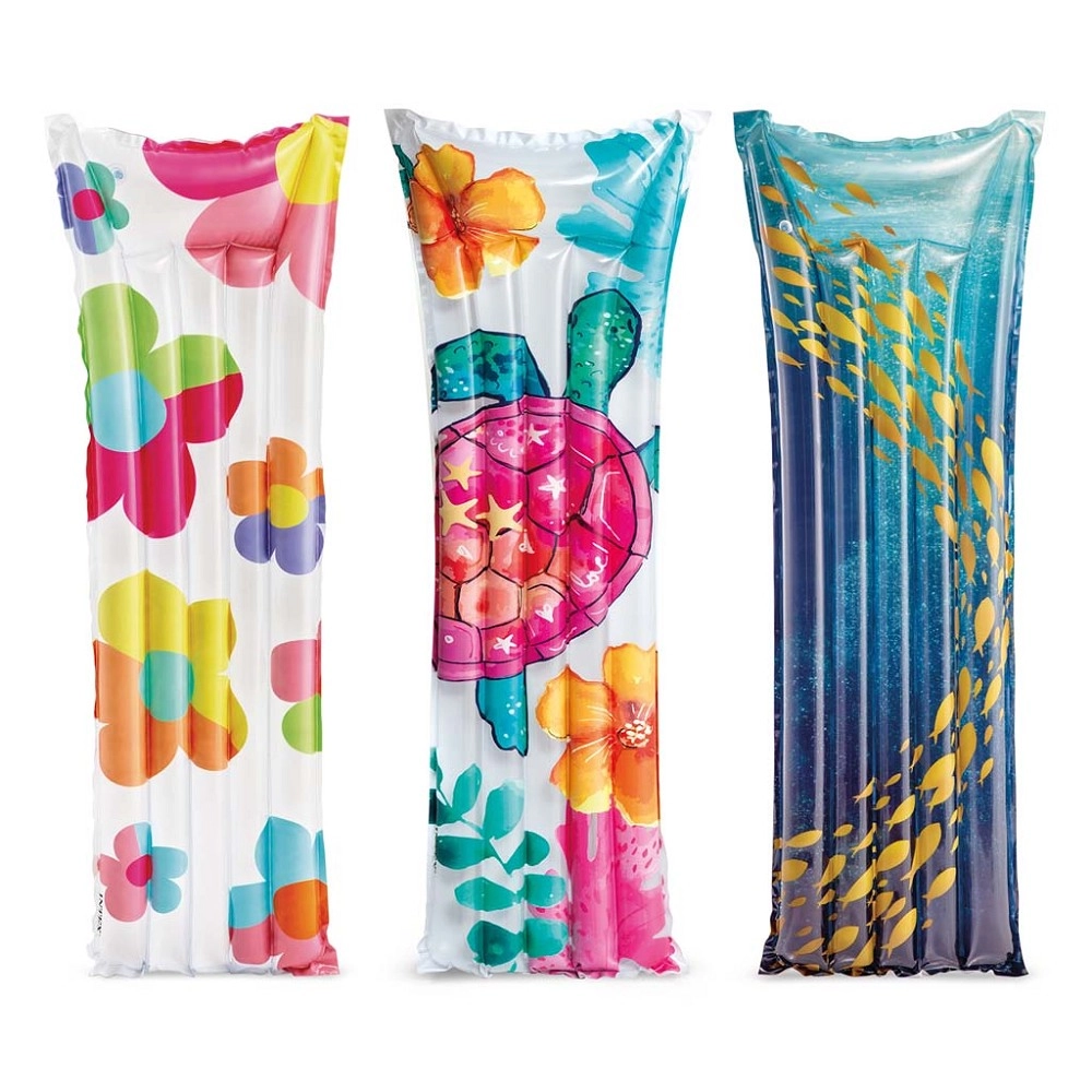 Napuhavajući madrac Intex s razigranim motivom ribica idealan je pratitelj za vodu i vrt. Zahvaljujući integriranom jastuku uživat ćete u maksimalnoj udobnosti pri sunčanju i relaksaciji, dok dvije odvojene zračne komore povećavaju sigurnost i stabilnost na vodi.