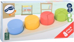 Ova atraktivna šarena edukativna igra od 100% FSC certificiranog drva idealan je alat za razvoj fine motorike i koncentracije kod djece. Veliki valjak podijeljen je na manje segmente koje djeca razvrstavaju prema obliku i boji.