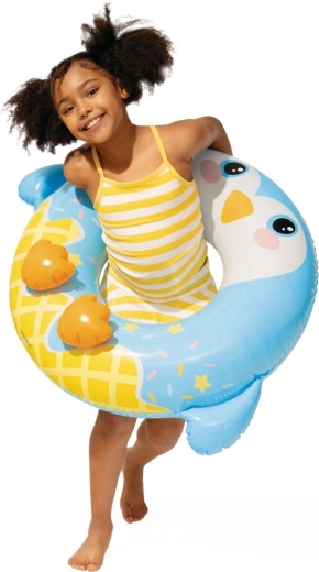 Šarmantan na napuhavanje prsten za vodu pomaže djeci steći sigurnost i stabilnost pri plivanju. Zahvaljujući promjeru 76 cm, sigurnosnom ventilu i nosivosti do 40 kg idealan je za vodene radosti starije djece. Zabavan životinjski dizajn privlači na prvi pogled i motivira na sigurno kretanje u vodi.