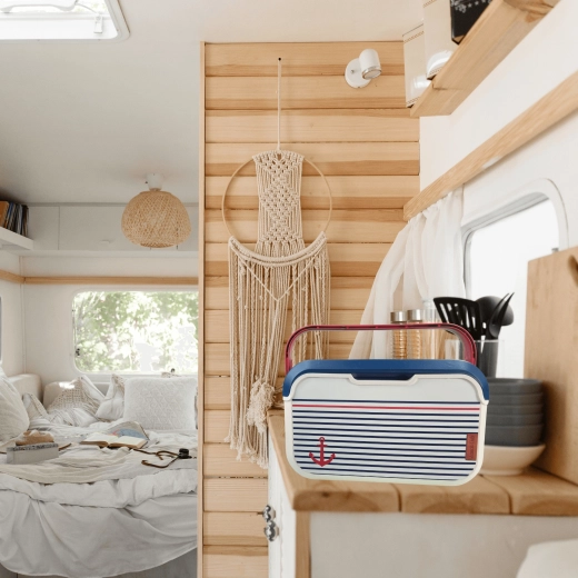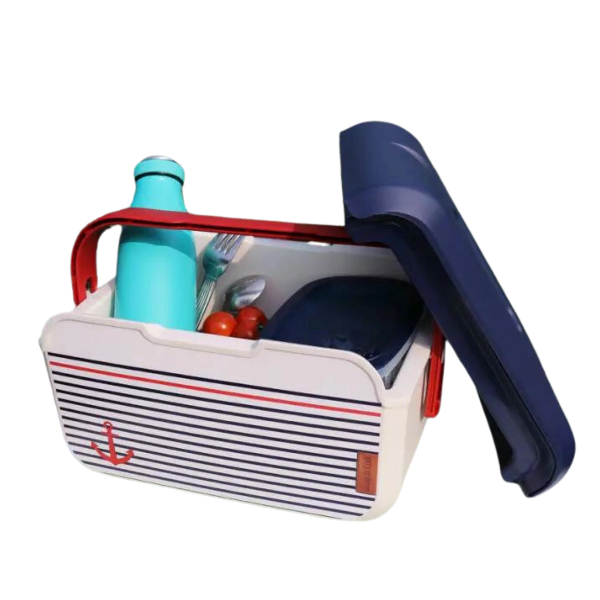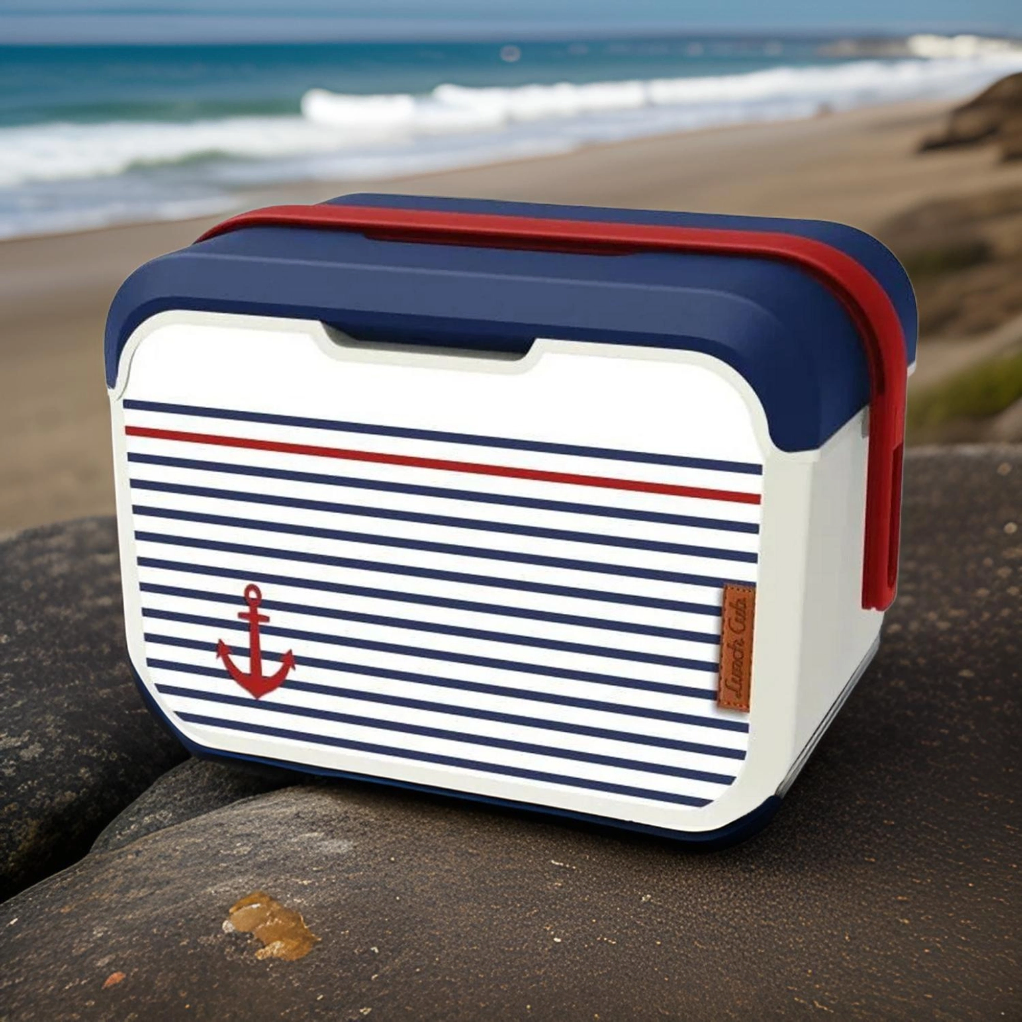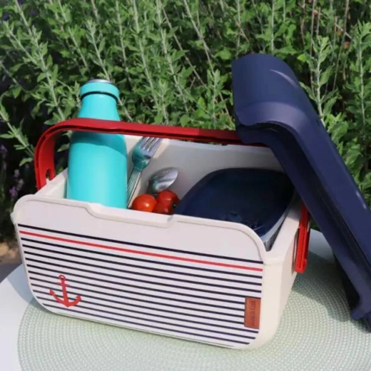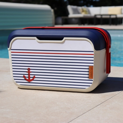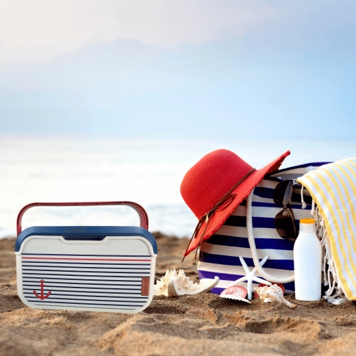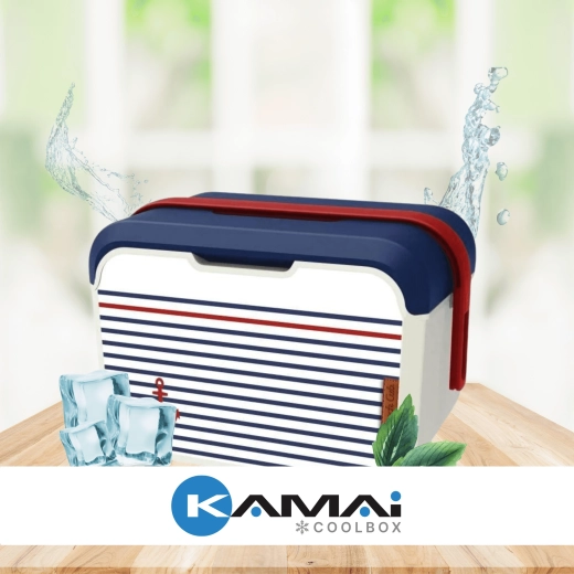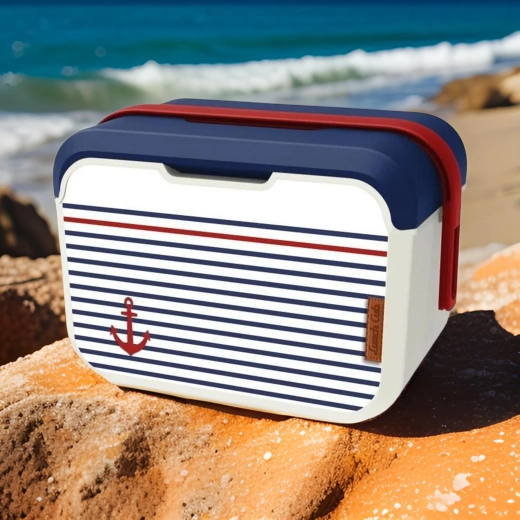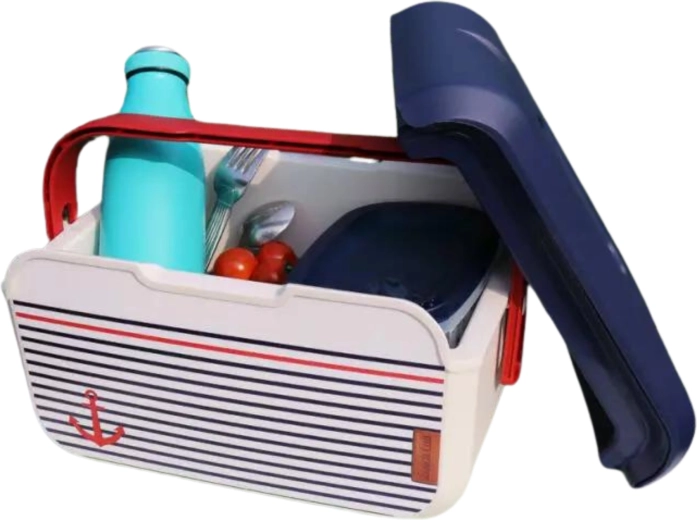 Kompaktna mini rashladna kutija KAMAI EDA 5 l u mornaričkom dizajnu održava vašu hranu i piće dulje svježima. Zahvaljujući laganoj konstrukciji, profiliranoj crvenoj ručki i izdržljivom PP plastičnom kućištu idealna je za piknik, plažu, automobil i izlet s djecom. Hladi uz pomoć rashladnih uložaka i jednostavna je za čišćenje.