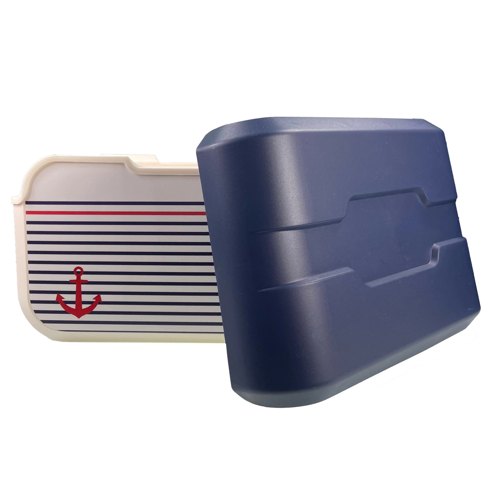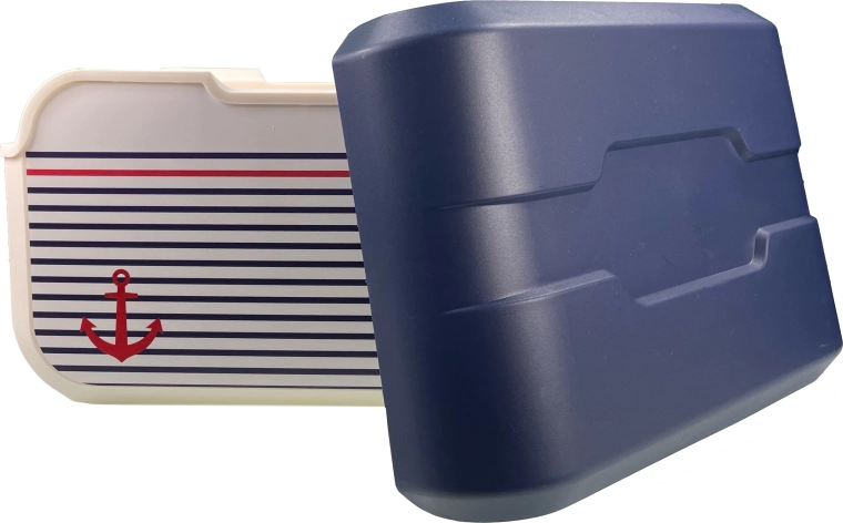 Vanilijsko tijelo, plavi poklopac i ikonično sidro pristaju na plažu i uz vodu. Izdržljivi PP plast jednostavno se čisti.