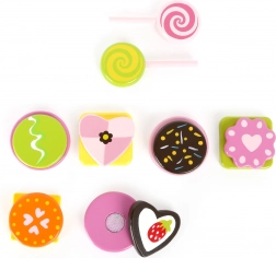 Tko bi odolio? Ovaj šareni set slastica od 100% FSC drva oduševljava lizalicama, keksima i pralinama koje se zahvaljujući čičak-trakama mogu iznova i iznova razdvajati i spajati. Sjajan dodatak za dječju kuhinju koji razvija finu motoriku i nudi beskrajnu dozu razigrane zabave.