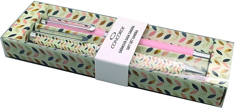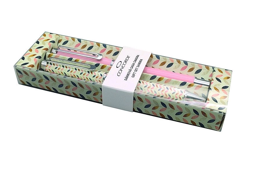 Priuštite si stil i pouzdanost s poklon setom CONCORDE Sandra. Kuglična olovka s okretnim mehanizmom omogućuje brzo i praktično izvlačenje vrha, dok roller u prekrasnoj ružičastoj nijansi pruža nježan, fluidan potez bez napora. Potpuno metalno tijelo i metalne klipse daju setu izdržljivost i premium izgled, prikladan i za radni stol i za torbicu.